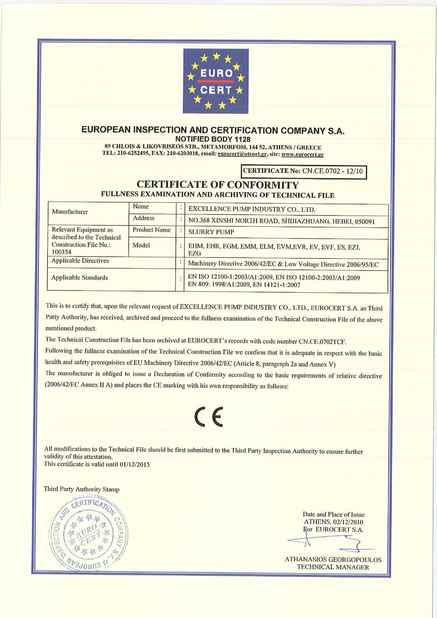 Наградило CO. индустрии насоса высокого профессионализма, Ltd. сертификат ISO для соответствия со стандартным ISO9001: 2008 (GB/T 19001-2008) причиной системы управления качеством, которая применяется в зоне ПРОДУКЦИИ И ОБСЛУЖИВАНИИ НАСОСА SLURRY, ТАКЖЕ, КАК ИХ ЧАСТИ.